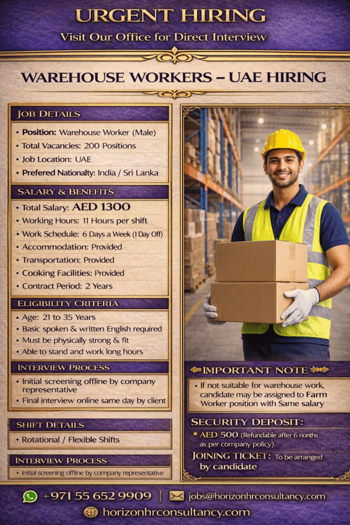 URGENT HIRING – Warehouse Workers (UAE)